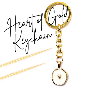 Stunning white enamel Freeform shape with Golden Heart in the center and beautiful golden rim, adorns this keychain. Total length 3 1/2β.